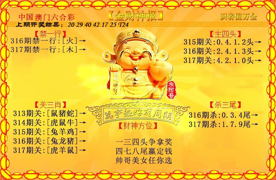 | 317期 | 40-49 | 六尾 | 大数 | 4头 | ?00 |
